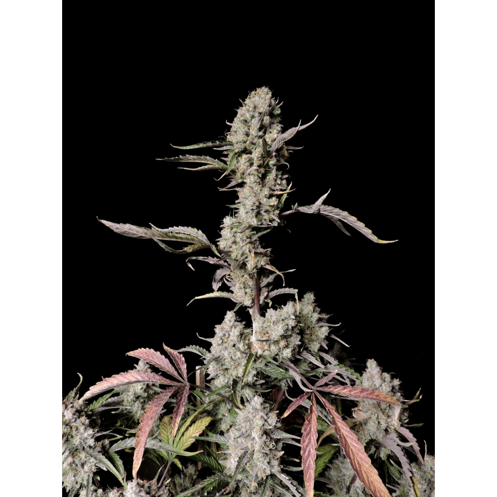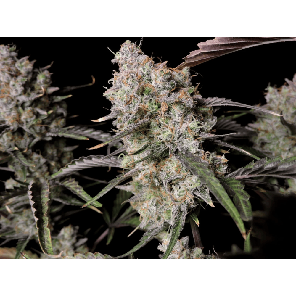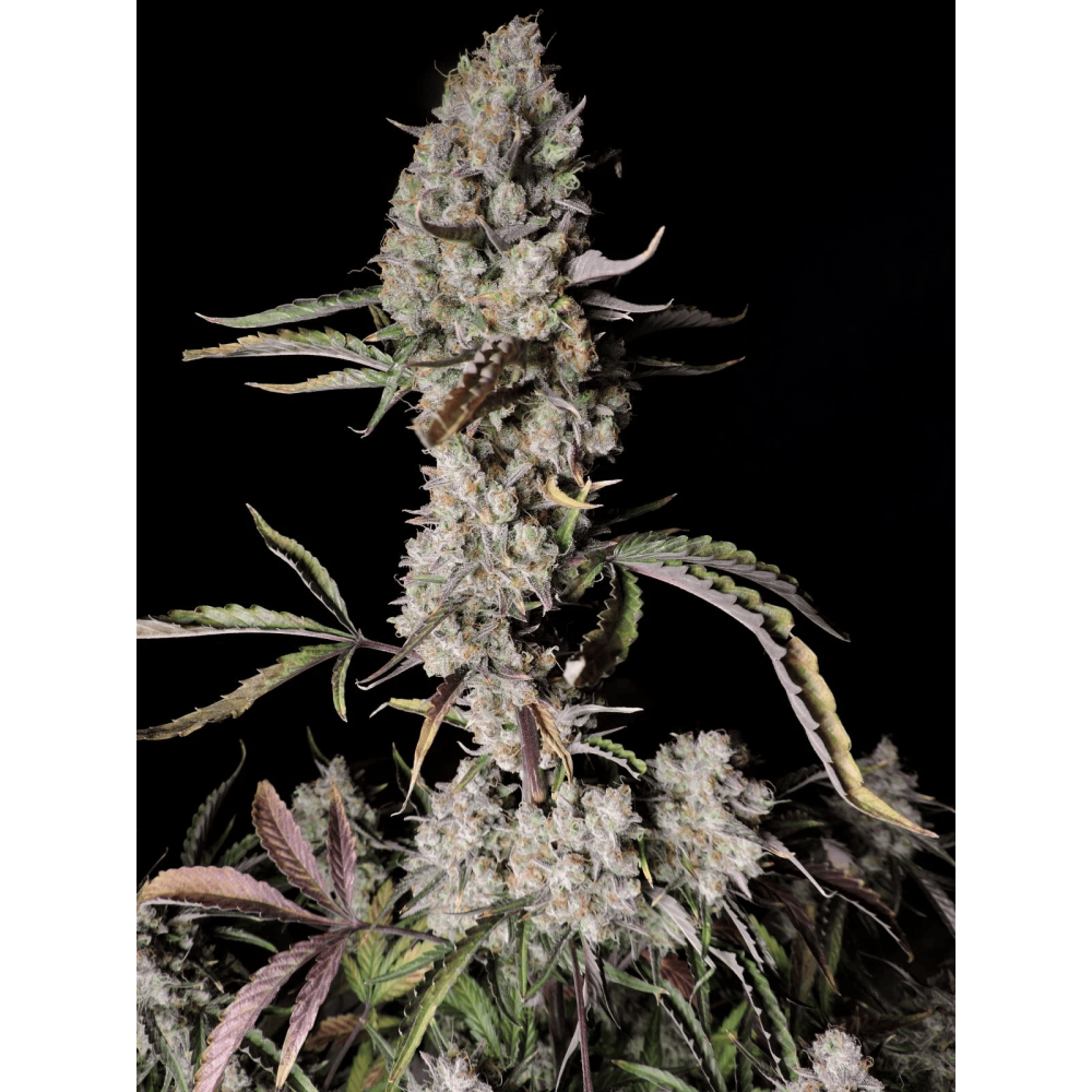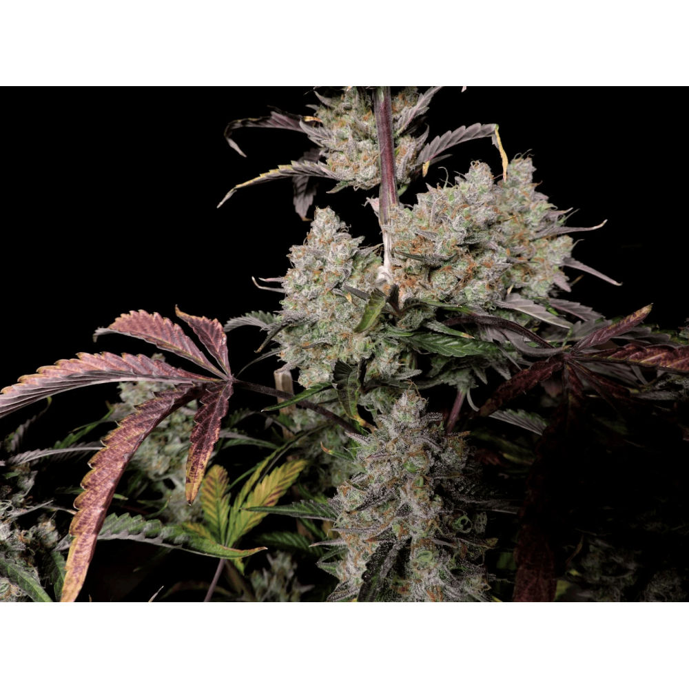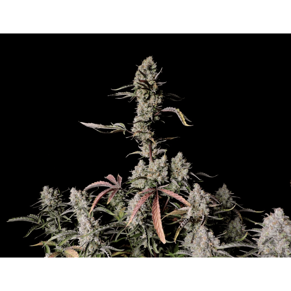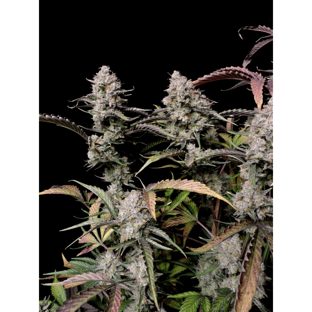 Uzun ve sağlam bir şekilde büyüyen bu bitki, 150 cm'ye kadar ulaşır, güçlü dallanma ve mükemmel boğum arası aralığına sahiptir. Tenis topu büyüklüğünde, trikomlarla tamamen kaplı, koyu yeşil ve mor tonlarında, ateşli turuncu tüylerle bezenmiş tomurcuklar bekleyin. Verim sadece 65 günde 650 g/m²'ye ulaşabilir, bu da kaliteyi ödün vermeden hızlı ve XXL hasatlar arayan herkes için ideal bir tür haline getirir.