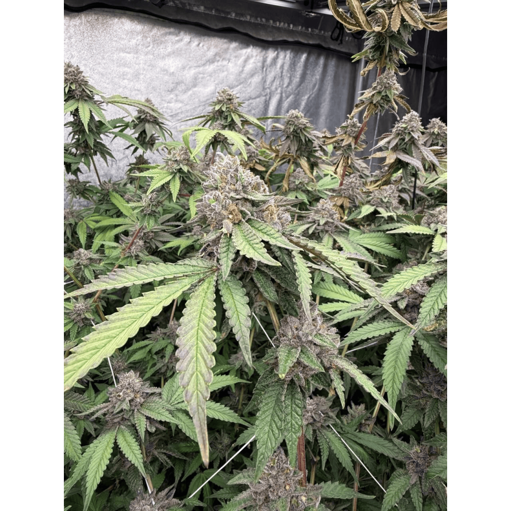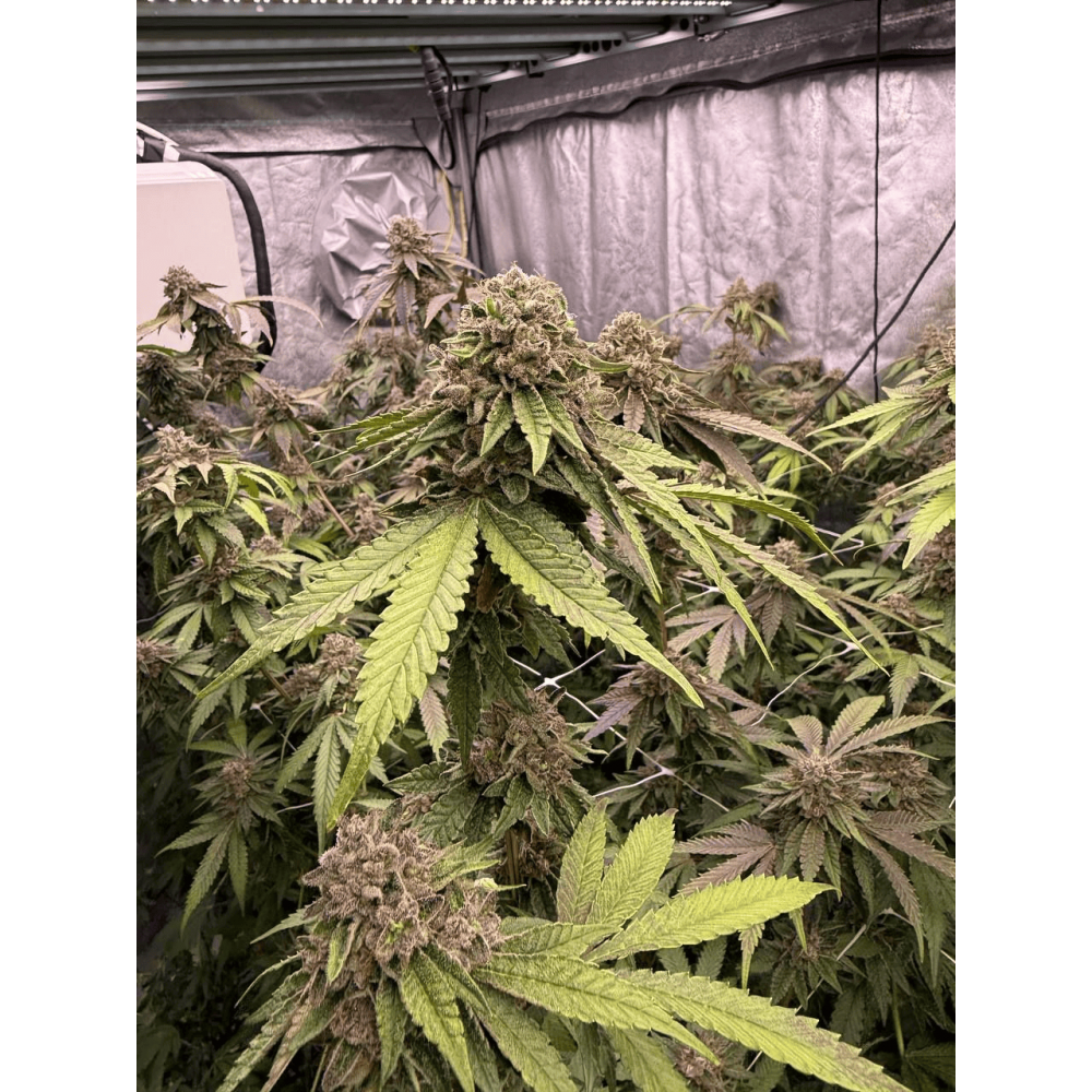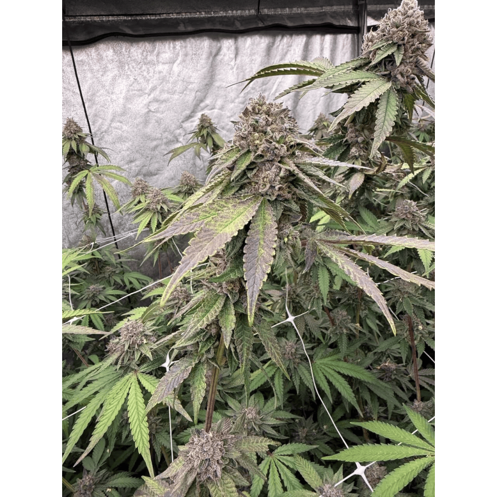 Biscotti Gelato, koleksiyonumuzdaki en iyi kesimlerden elde edilmiştir. Modern zamanlara göre rafine edilmiş ve ayarlanmış olan bu tür, %32'ye varan bir etki gücü (ticari partilerin çoğu %30'un biraz üzerinde puan almaktadır), mükemmel dengelenmiş bir etki ve parlak bir aroma sunar. %50/%50 hibrit (bazı fenotipler hafifçe indica ağırlıklıdır) olması, net bir öfori, zihinsel berraklık, yaratıcı enerji ve vücut gevşemesi arasında tatlı bir denge sağlar. Aroma açısından, İtalyan bir tatlıyı düşünün: kremsi bir taban üzerinde tatlı kurabiye ve taze limon kabuğu rendesi, baharat ve klasik OG toprak notalarıyla. Narenciye-tatlı notalar nefes verirken kalır, hafif biberli ve "köpüren" bir şekilde sonlanır. Biscotti Gelato, güçlü dikey büyüme gösterir ve gerçek bir güneş aşığıdır: diğer türlere kıyasla %10-15 daha fazla ışık sağlayarak kesinlikle daha fazla fayda göreceksiniz. Güçlü yanal dallanma sayesinde yaprak budamasına, tepe kesimine ve SOG/SCROG yöntemine iyi yanıt verir. Çiçeklenme döneminin sonlarında nemi orta seviyede tutun: çok sayıda kompakt ve yoğun tomurcuğu, hava akışı yetersizse zarar görebilir. Açık havada sıcak ve güneşli iklimleri tercih eder; silika eklemek ise gövdeleri kıyı rüzgarlarına karşı güçlendirir. Çiçeklenmesi yaklaşık 10 hafta sürerken, Kuzey Yarımküre'de Ekim ayı civarında hazır olmasını bekleyebilirsiniz. Stabilize ettiğimiz Biscotti Gelato'nun en iyi fenotipleri bol miktarda "şekerli" trikom gösterir ve gece sıcaklıkları yeterince düşerse açık mor renge dönüşebilir. Yüksek verimi, lezzeti ve gücüyle, oyunlarını bir üst seviyeye taşımak isteyen ticari yetiştiriciler için mükemmel bir seçimdir.
