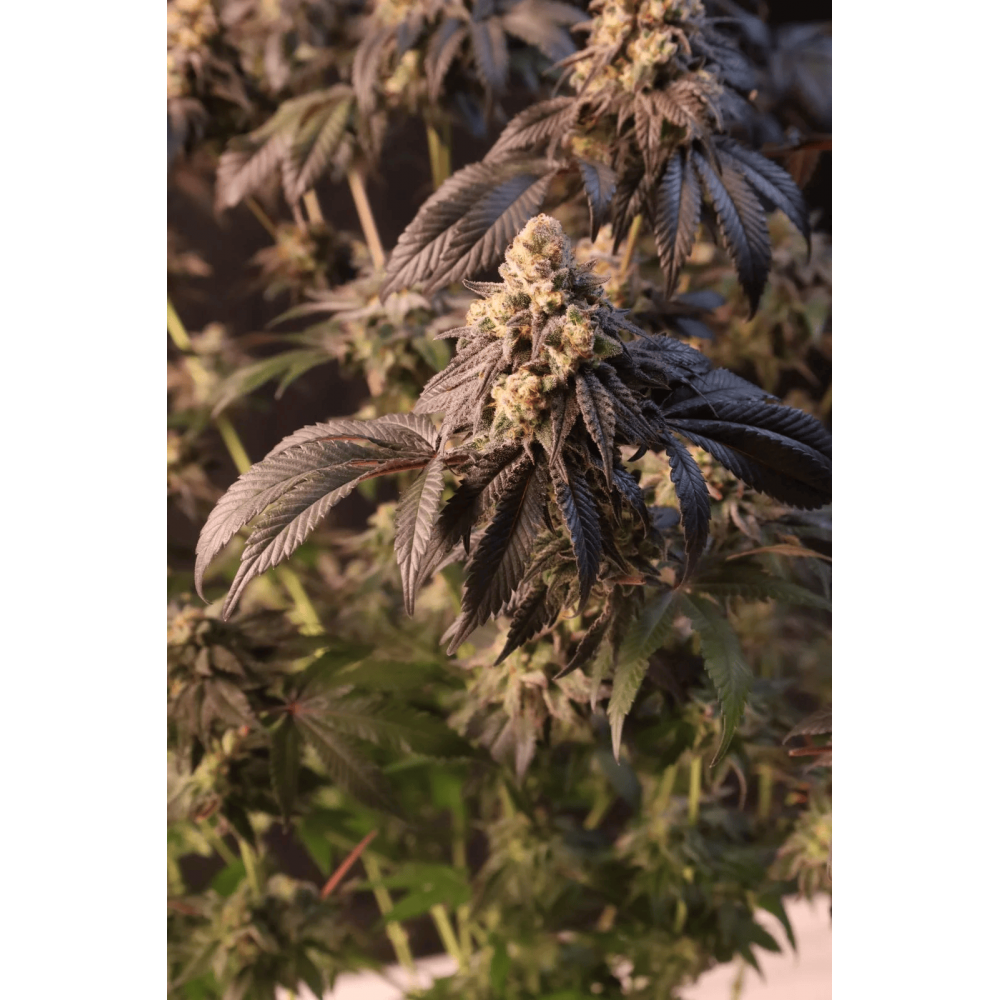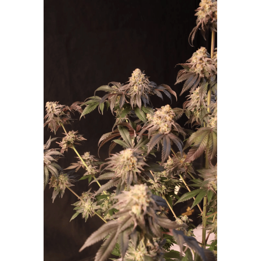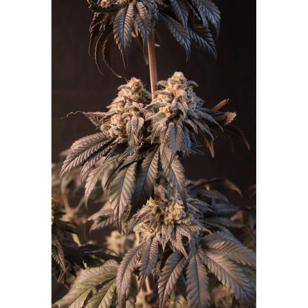 Papayton, sevilen Lemonpaya ve iki güçlü genetiğin, Cookies serisinden Gary Payton ve Sherbinskis'ten Gelato'nun yer aldığı ıslah projemizin sonucudur. Bu tür, reçine, etki ve lezzet açısından zengin XXXL hasatlar sunmak üzere ıslah edilmiştir. Papayton, hem boyut, hem tomurcuk üretimi hem de yoğunluk açısından merkezi kola ile yarışan güçlü yan dallanmalara sahip, dengeli ve yüksek performanslı bir bitki olarak büyür. Noel ağacı benzeri yapısı, yetiştirme alanını optimize etmek ve toplam verim potansiyelini artırmak için idealdir, ancak tüm döngü boyunca uygun havalandırmayı sağladığınızdan emin olun. Çiçeklenme ilerledikçe, bitki özellikle daha serin bitirme koşullarında koyu yeşilden neredeyse siyaha kadar çarpıcı bir yaprak rengi yelpazesi ortaya çıkarır. Düşük sıcaklıklarda (16–18 °C) doğru şekilde kurutulduğunda, tomurcuklar karakteristik ağırlıklarını ve görsel çekiciliklerini korur - yoğun, yapışkan ve tepeden tırnağa trikomlarla kaplıdır. Tomurcuklarının sunduğu terpen profili zengin, tatlıdır ve genel olarak meyveli şerbetli dondurma gibi hissettirir. Papayton, çoğu yetiştirme koşuluna uyum sağladığı için deneyler yapmak, kendin yap yetiştirme projeleri ve zorlu koşullarda yetiştirenler için iyi bir adaydır. Orta düzeyde beslemeye iyi yanıt verir ve döngünün sonunda substrat yıkamalarından fayda görür: bu, daha yumuşak bir duman ve gelişmiş aroma ifadesi sunmasına yardımcı olur. Dayanıklılığı, yapısı ve terpen derinliği, onu hem iç mekan ev yetiştiriciliği hem de büyük ölçekli üretim için en iyi seçeneklerden biri yapar. XXXL boyutunda verim ve eşsiz istikrarıyla, bu, yetiştirme programımızın gerçek bir amiral gemisi türüdür.